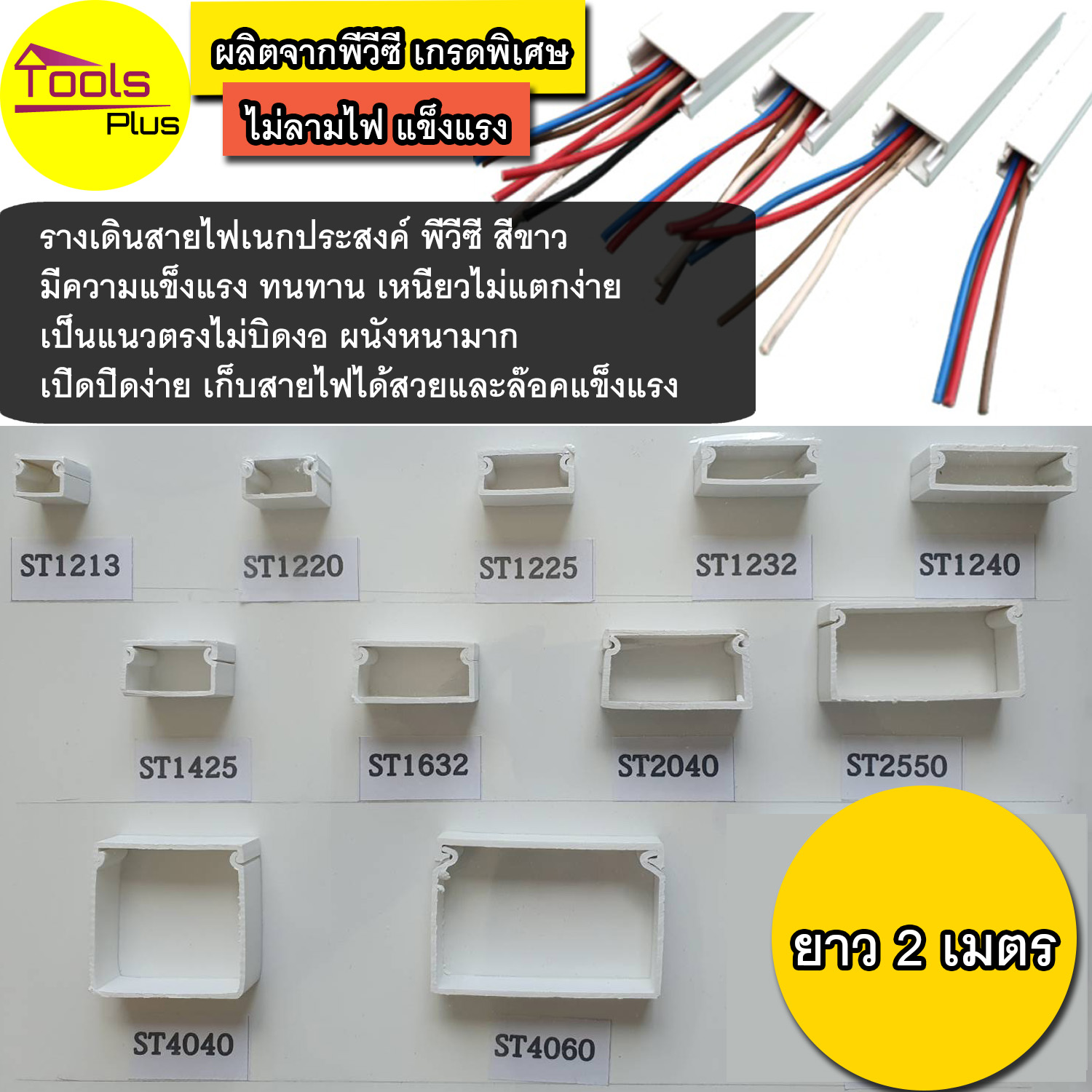 รางเดินสายไฟเอนกประสงค์ พีวีซี สีขาว ยาว 2 เมตร